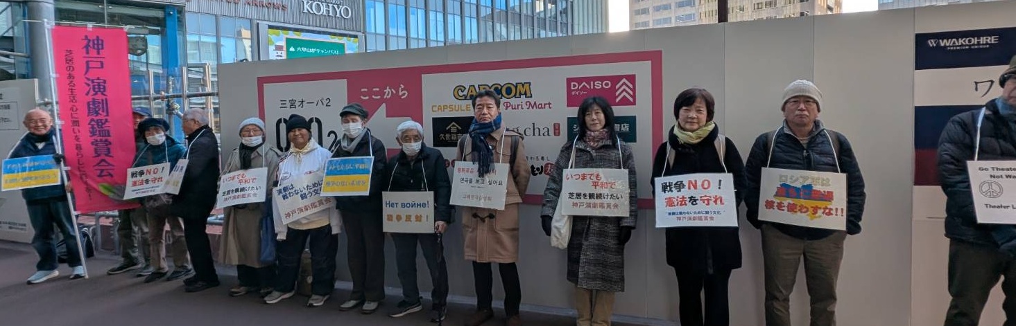 「いつまでも平和で芝居を観続けたい」そんな思いで毎月19日に駅頭に立ち続けています。 ■ 次回は、4月19日(日)10:00、ポートライナー三宮駅改札前にて